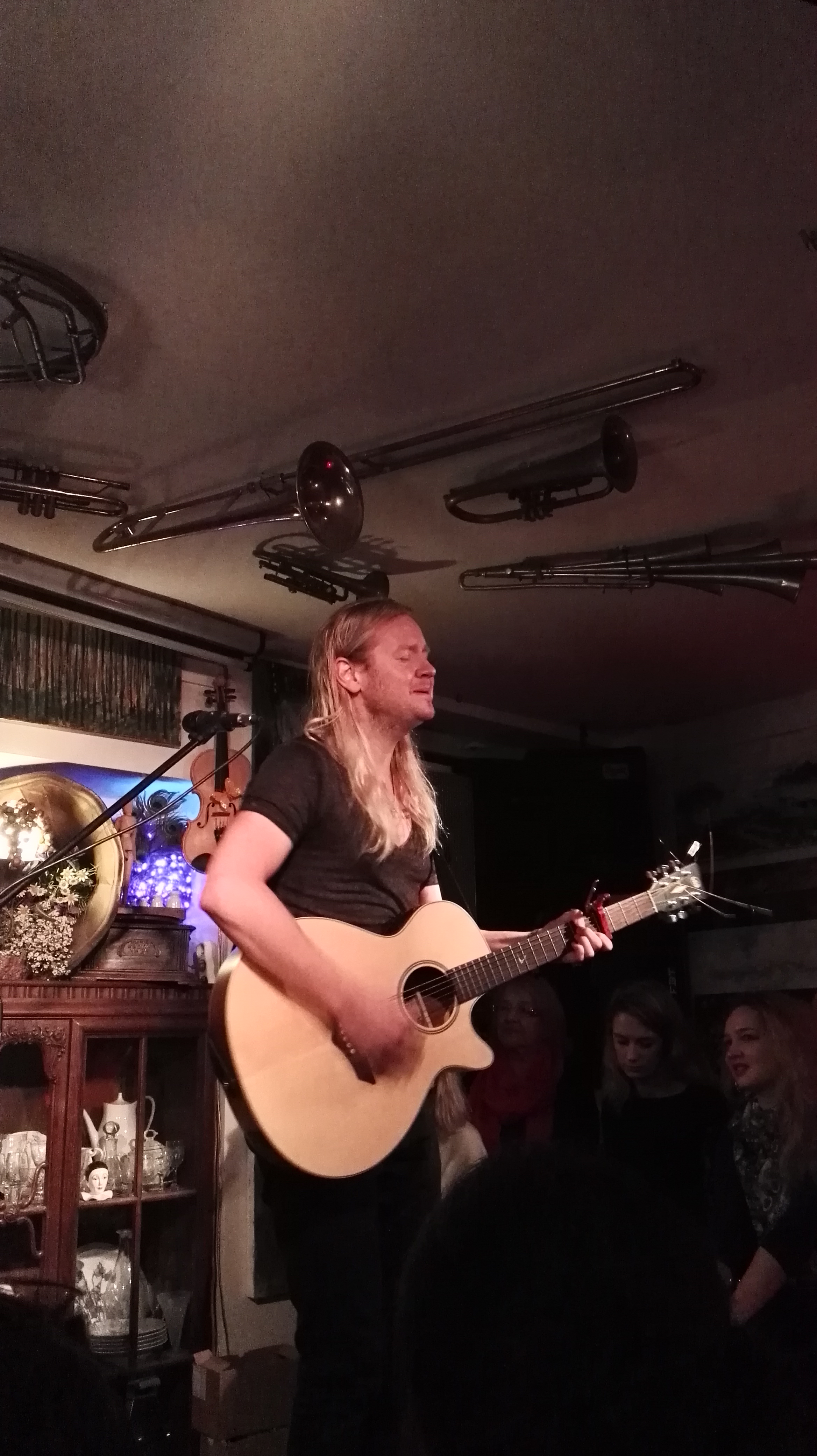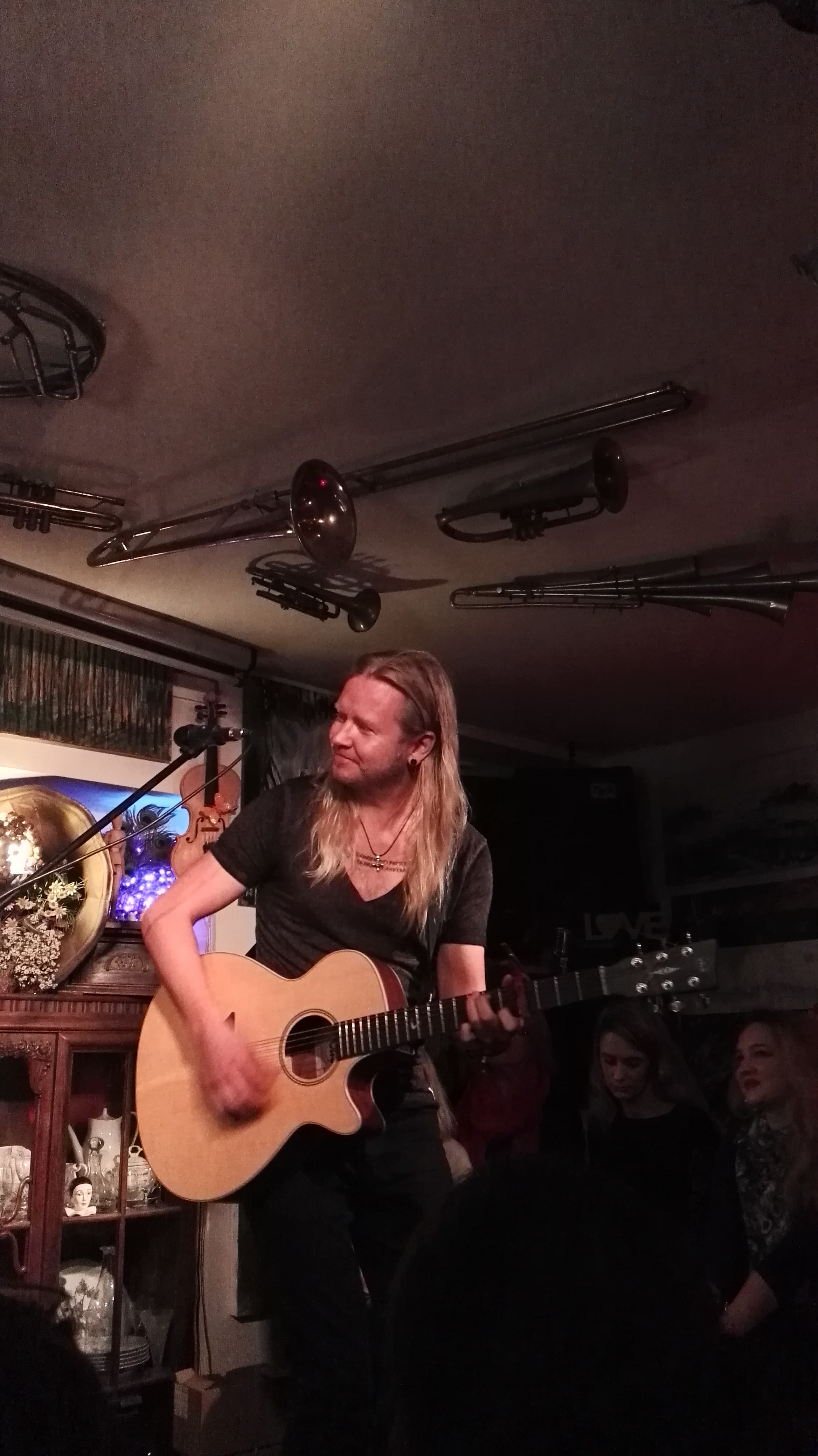 Tak, zgodzę się z Ragnarem, że La Boheme to miejsce naprawdę wyjątkowe. Niby garaż, niby pracownia malarska, a w istocie coś w rodzaju salonu z kanapą i stołem, a wszędzie stoi dużo bibelotów, w które powtykane są pawie pióra. Właściciele tego miejsca są równie gościnni, co rodzinni – przy wejściu przedstawiają się, przyjmują zamówienia na wino, proponują herbatę z dolewką. A przede wszystkim mają zapchany kalendarz i wśród zaplanowanych występów znaleźć można sporo nazwisk islandzkich. Już za tydzień będzie u nich grała Halla Nordfjörd, o której też niewiele wiem, ale być może atmosfera miejsca sprawi, że wieczór spędzę tak miło, jak dzisiaj.