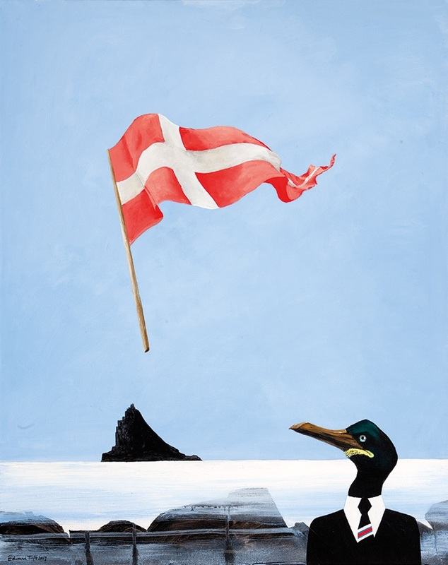 W mocno osadzonej w farerskim kontekście twórczości Edwarda Fuglø nie mogło zabraknąć motywów duńskich. Tetraptyk Danorama składa się z czterech dzieł o identycznych wymiarach oraz podobnej kompozycji: w prawym dolnym rogu głowa kormorana w eleganckim garniturze na tle pejzażu z jedną z wysp farerskiego archipelagu zestawiona jest z symbolami duńskości – flagą Dannebrog, kopenhaską wieżą Rundetårn, filiżanką z królewskiej manufaktury albo rzeźbą Małej Syrenki.