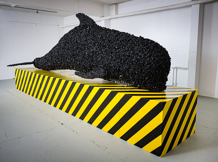 Grindwal leży w półmroku, w podziemiach poczty w Klasvíku. Na razie w dwóch częściach; przednia połowa bliżej drzwi, tylna w głębi piwnicy. Rodzi się powoli, z pianki budowlanej, którą według wskazówek Edwarda Nóra okłada teraz namoczonymi w kleju chustami z nadrukiem Małej Syrenki. To podkład. Pod ścianą w kartonowych pudłach czekają na swoją kolej tysiące plastikowych żołnierzyków. (…) – Rzeźba ma symbolizować wojnę o grindwala.