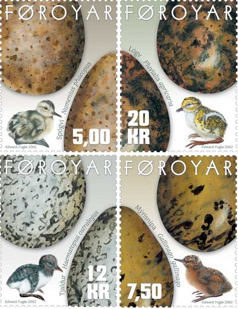 Seria składa się z przedstawień jaj oraz piskląt farerskich ptaków: Spógvi (Kulik mniejszy), Mýrisnípa (Bekas kszyk), Tjaldur (Ostrygojad zwyczajny) i Lógv (Siewka złota).