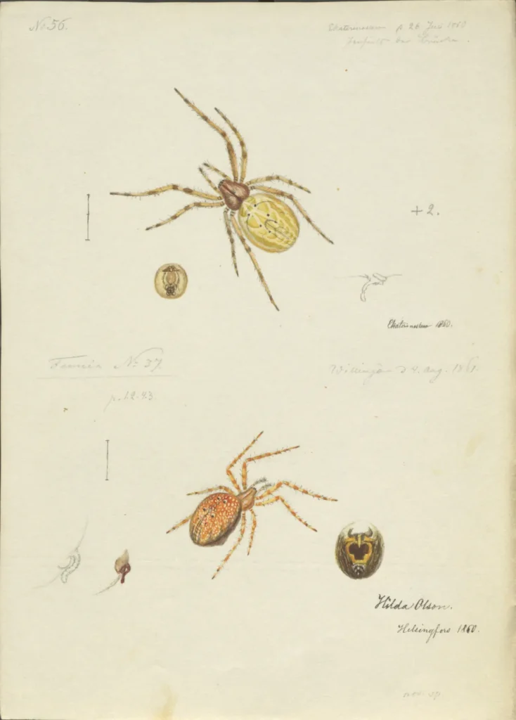 W latach 1859–1862 stworzyła 454 rysunków pająków pod kierunkiem profesora zoologii Alexandra von Nordmanna. Akwarele stanowią unikatową kolekcję w Finlandii, zarówno ze względu na ich liczbę, jak i charakter. Pierwotnie ilustracje miały zostać opublikowane, ale projekt nie został ukończony, a akwarele przez dziesięciolecia przeleżały w archiwach.