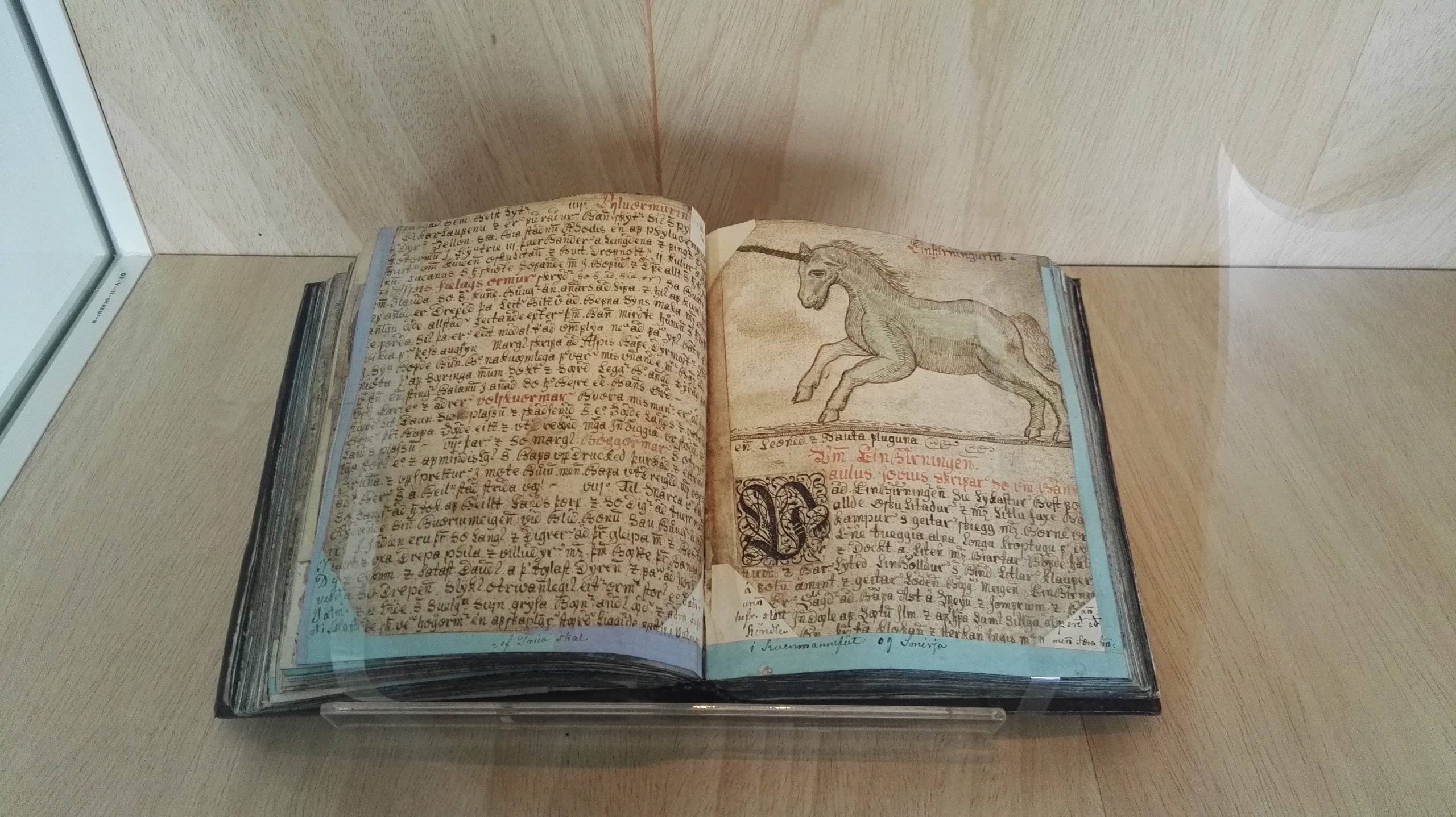 i choć tego typu manuskrypty wykazywały istnienie różnych stworzeń, również fantastycznych, z istnieniem jednorożców w średniowieczu różnie bywało. w chrześcijańskiej ikonografii białe konie z rogiem były symbolem dziewictwa Marii, ale pomimo legendy o polowaniu jednorożca (mówiącej o tym, jak trudno je złapać), wikingowie z powodzeniem handlowali spiralnie kręconymi białymi rogami. i taki eksponat również posiada Safnahúsið, tyle że nie został on pozyskany bezpośrednio na wyspie, a w 1921 roku znaleziono go na islandzkiej plaży, bo do Islandii… przypłynął.