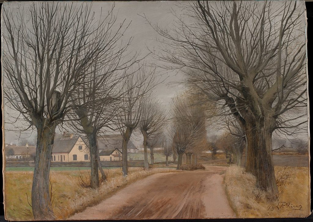 Dróżnik to pierwszy obraz, który dał malarzowi rozgłos. Zaangażowany politycznie, Ring przedstawił swoje polityczne poglądy w obrazie stojącego tyłem dróżnika w chodakach, przyglądającego się nadjeżdżającemu z daleka pociągowi. Kolejnictwo było wówczas jednym z głównych szans rozwoju duńskich wsi. Duński symbolista namalował ten obraz jeszcze przed wyjazdem do Francji, a mimo to zastosował kolorystykę i utworzył nastrój charakterystyczny dla malarzy skandynawskich malujących w Grez-sur-Loign. Potem przebywał w Paryżu i podróżował po Italii, studiował również krótko u P. S. Krøyera. Jego późniejsze malarstwo to sceny rodzajowe inspirowane twórczością francuskiego realizmu, ale również symboliczne pejzaże i sceny wnętrz. Często portretował również swoją żonę, Sigrid Kähler. Za obraz W drzwiach ogrodowych (1897) otrzymał brązowy medal na paryskiej Światowej Wystawie w 1900 roku.